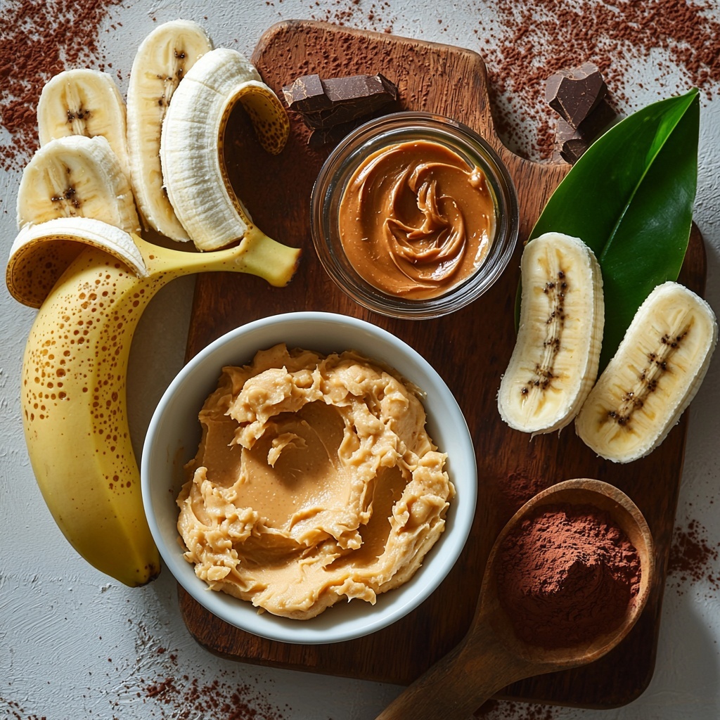 3. Combine Ingredients: Add the creamy peanut butter and unsweetened cocoa powder to the mashed bananas, stirring gently but thoroughly until the mixture is fully combined and thick in consistency.