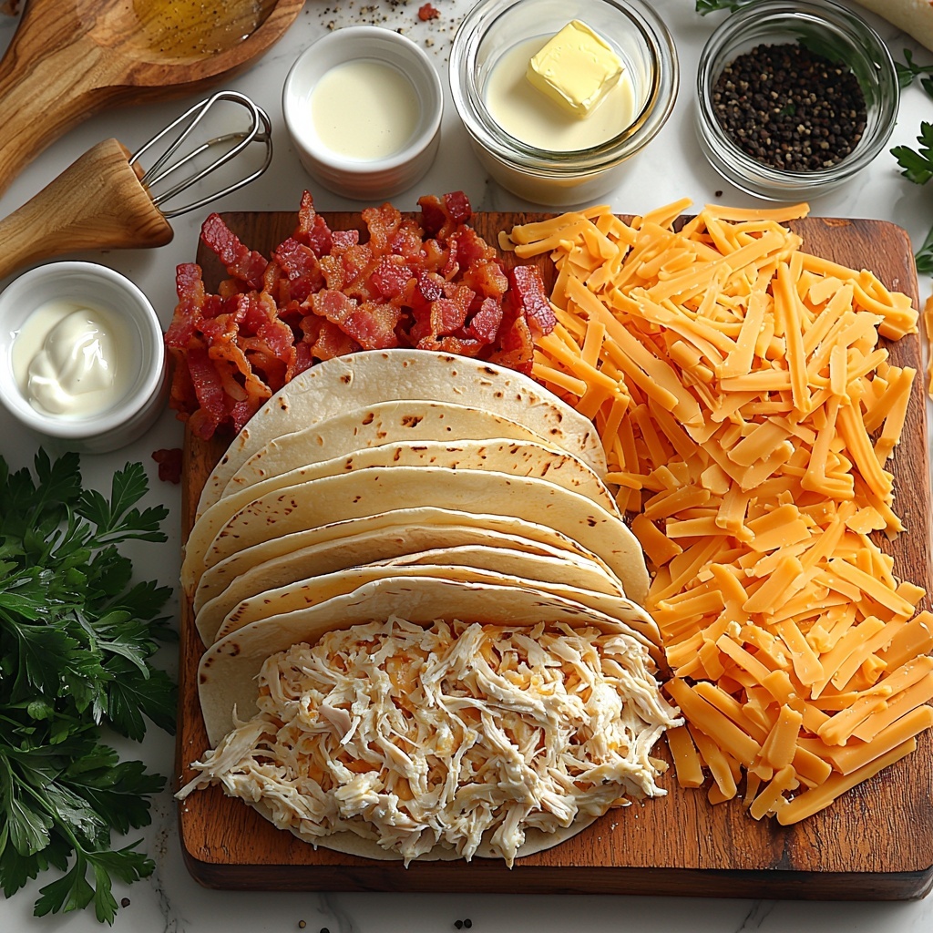 Getting started with the Bacon Ranch Chicken Wraps Recipe means rounding up a handful of approachable ingredients that work together to deliver incredible flavor and texture. Each element, from the creamy cheeses to the crispy bacon and aromatic herbs, plays a crucial role in building the rich, satisfying taste this dish offers.