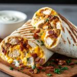 Delicious Bacon Ranch Chicken Wraps combine tender shredded chicken with a creamy, cheesy ranch sauce and crispy bacon, all wrapped in toasted extra-large flour tortillas. Perfect for a quick and satisfying meal ready in 30 minutes.
