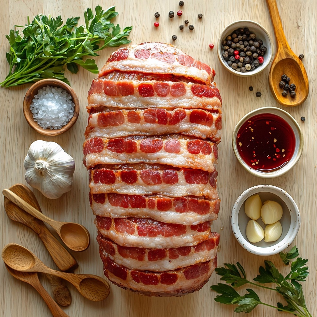 The magic of this Bacon-Wrapped Pork Loin with Pepper Jelly Glaze Recipe truly comes alive because of its simple yet carefully curated ingredients. Each component plays an essential role, from the salt that enhances the pork’s natural flavor to the pepper jelly that adds a tantalizing glaze packed with character. Let’s break down the essentials so you feel confident gathering your grocery list.