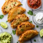 While these tacos can be a meal on their own, pairing them with simple sides elevates your dinner game. Think a crisp green salad, Mexican street corn, or even a zesty black bean and corn salad. These sides add freshness and balance to the hearty, cheesy tacos, making your meal feel complete and celebratory.