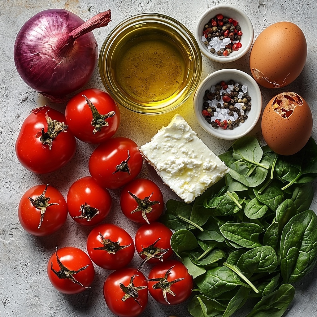 How to Make Baked Feta Eggs with Cherry Tomatoes and Spinach Recipe