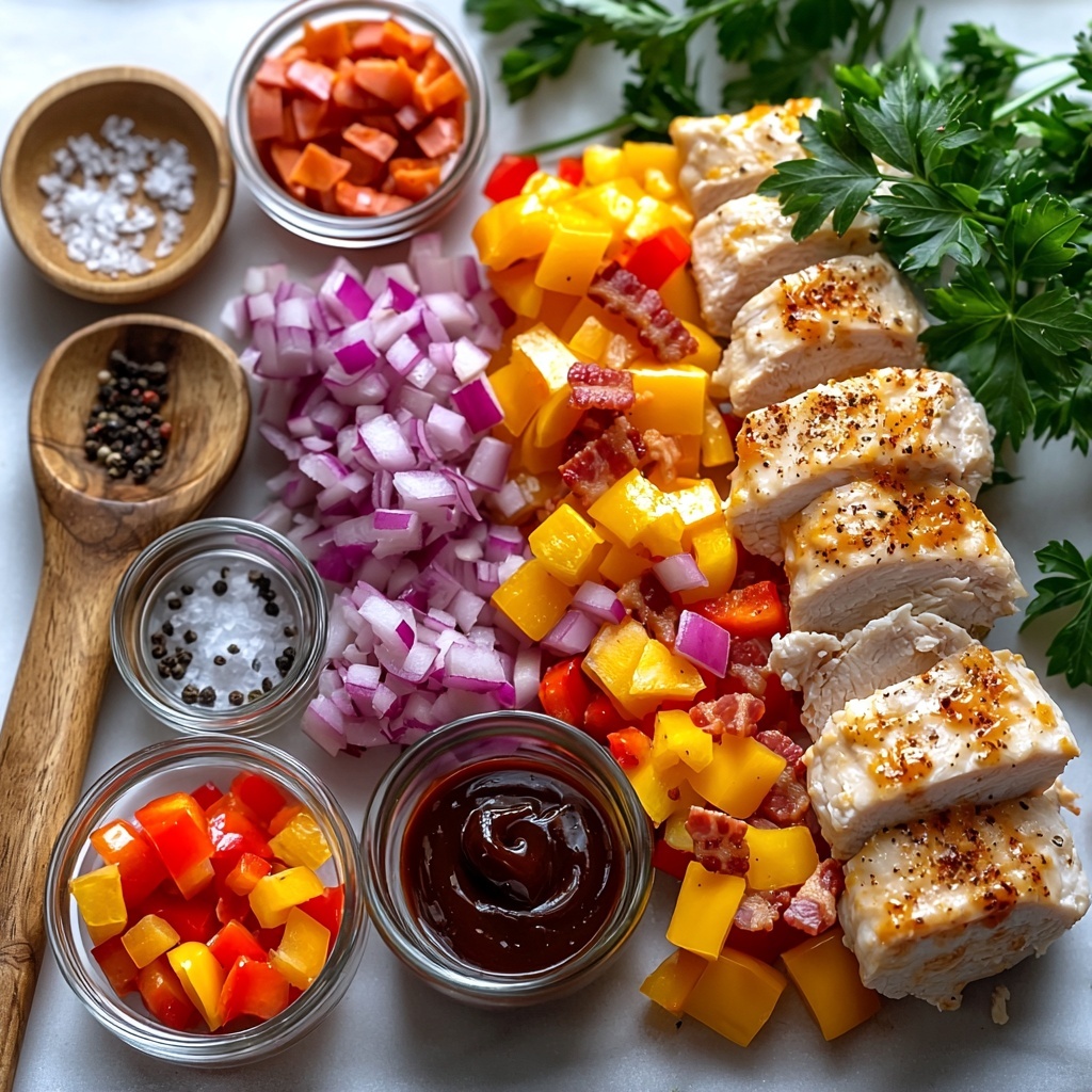 Gathering the right ingredients is the first step toward that perfect balance of smoky, cheesy, and tangy flavors in this dish. Each ingredient plays a crucial role, from the succulent chicken providing tender bites to the crisp bacon that adds crunch and savory depth. The fresh veggies contribute a burst of color and subtle sweetness, while the spices and cheese round everything out beautifully.