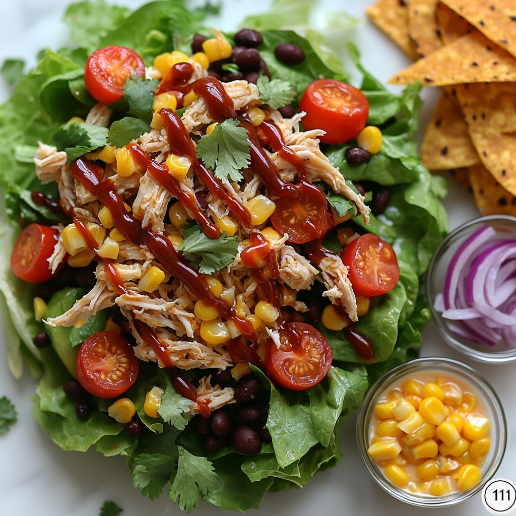 - Add Finishing Touches: Sprinkle tortilla strips over the salad for crunch. Drizzle extra barbecue sauce and your preferred salad dressing, such as ranch, over the top. Gently toss all the ingredients together to mix flavors.