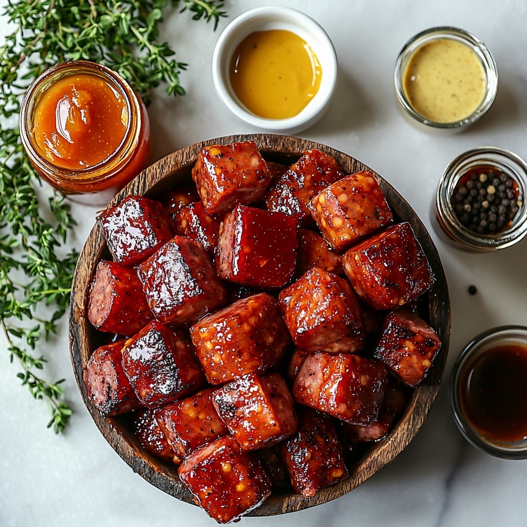 Start by combining your barbecue sauce, apricot jam, Dijon mustard, apple cider vinegar, Worcestershire sauce, and black pepper in a medium bowl. Whisk them together until smooth and fully blended. This sweet and tangy sauce is what will coat the sausages and transform them into something truly mouthwatering.