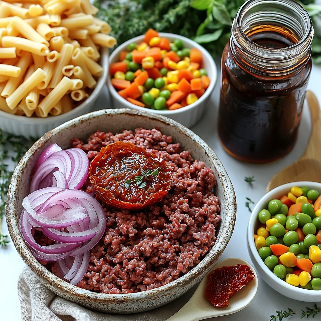 Gathering the essentials for this Beef and Macaroni Soup Recipe is delightfully straightforward, yet every ingredient plays an important role in building the dish’s flavor, texture, and color. From the hearty ground beef to the cozy pasta and bright veggies, each element makes this soup truly special.