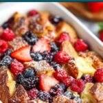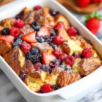 This Berry Croissant Bake is a delightful and easy-to-make breakfast casserole combining flaky croissants with a medley of fresh berries and a creamy custard mixture. Perfect for a weekend brunch or a special occasion, this dish offers a golden, custard-soaked base bursting with vibrant strawberry, blueberry, and raspberry flavors.