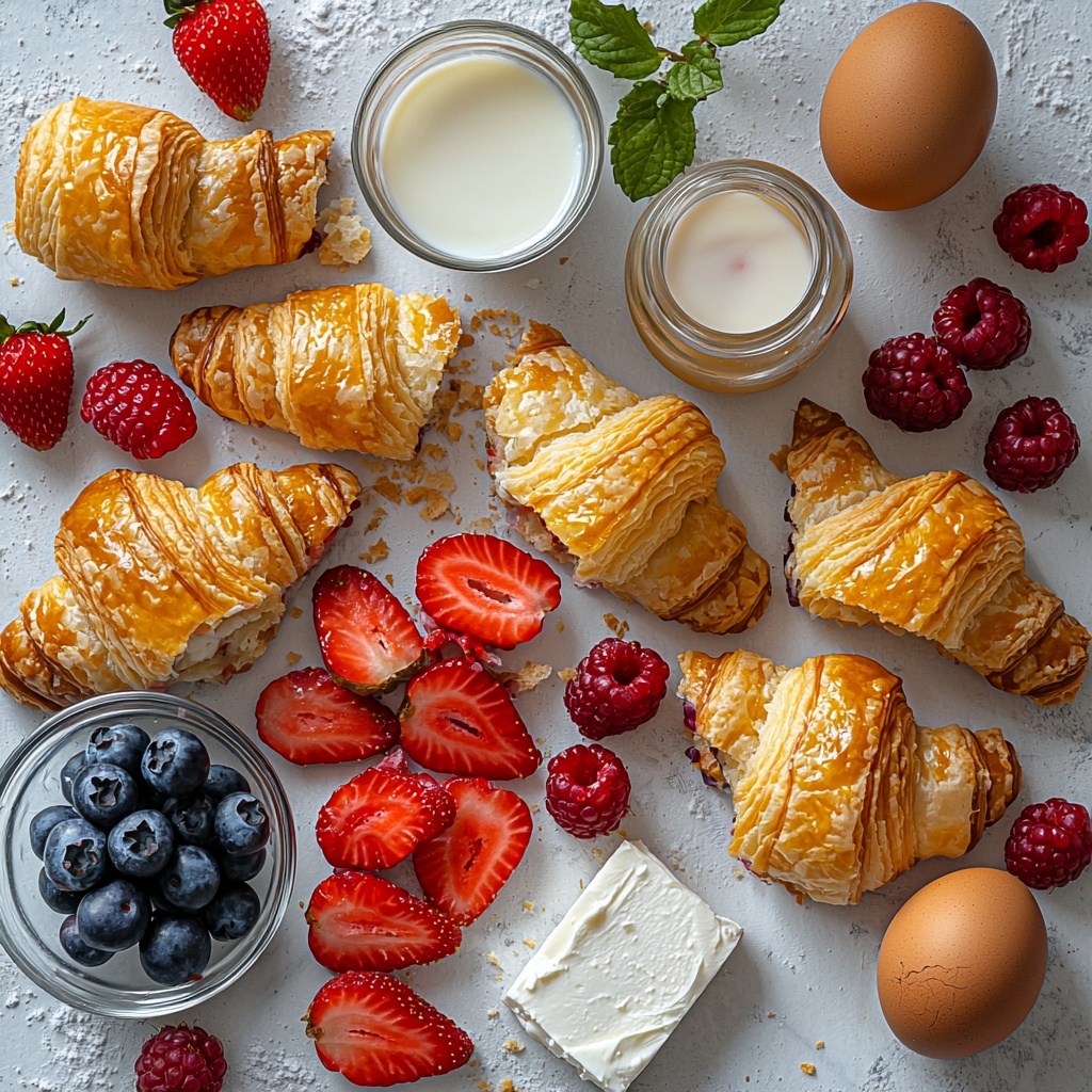 You only need a handful of straightforward, pantry-friendly ingredients to whip up this Berry Croissant Bake Recipe. Each component plays an essential role, from the flaky croissants building the base to the fresh berries adding vibrant color and natural sweetness, while the creamy custard ties it all together with smooth, rich texture.