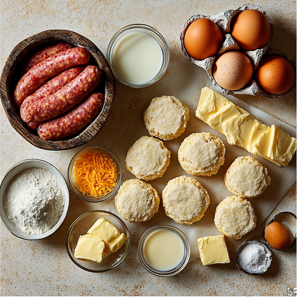 Sometimes, the simplest ingredients make the biggest impact. Each element here plays a crucial part in building layers of flavor and texture—from the savory sausage and fluffy eggs to the cheesy goodness and tender biscuits. Let’s take a closer look at what you’ll need and why.