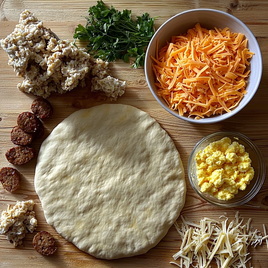 Gathering your ingredients for this Breakfast Stromboli Recipe is a breeze because it relies on simple, honest components that each bring something special to the table. From the tender eggs to the crispy crust, every item enhances the final dish’s texture and flavor beautifully.
