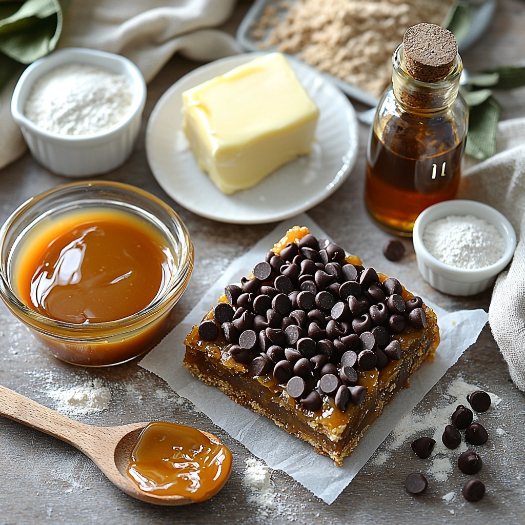 The magic behind the Caramel Crush Bars Recipe lies in its straightforward ingredients, each playing a vital role in creating a symphony of flavors and textures. These pantry staples come together beautifully to build a tender base, luscious caramel center, and that finishing touch of chocolate delight.
