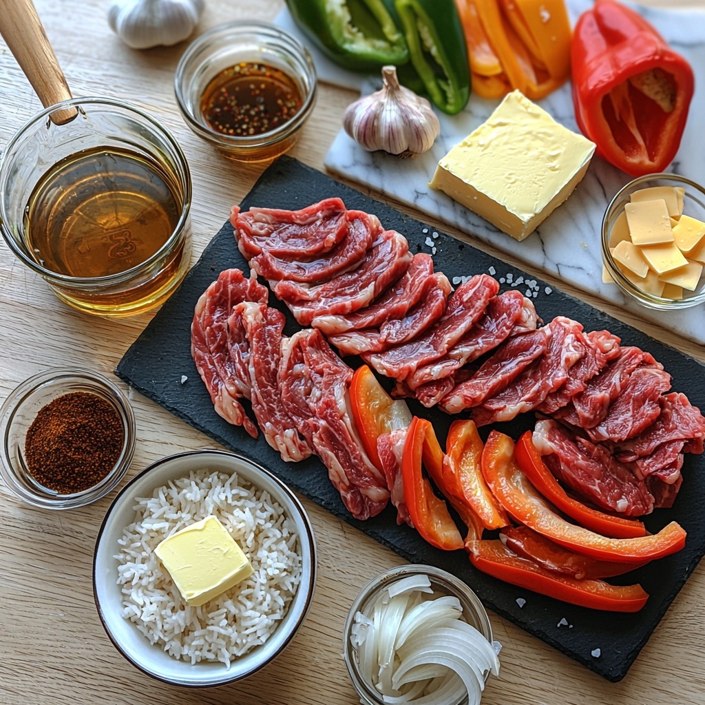 To make the luscious cheese sauce that takes this Cheese Steak & Rice Recipe over the top, start by melting 3 tablespoons of butter in a medium saucepan over medium heat. Whisk in the flour and cook for about one minute to remove that raw floury taste. Slowly pour in the whole milk while whisking continuously to avoid lumps. When the sauce thickens, stir in the softened cream cheese until it melts, then add the freshly grated sharp cheddar cheese. Keep stirring until the sauce is smooth and glossy. Season with garlic powder, salt, and white pepper to taste, and your silky cheese sauce is ready to drench your dish.