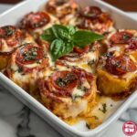 Cheesy Baked Italian Pizza Roses are a creative and visually stunning twist on traditional pizza. Made by rolling strips of pizza dough with pepperoni and cheeses into rose shapes, then baked to golden perfection, these bite-sized treats are perfect for parties, appetizers, or a fun family dinner. Served with warm marinara sauce and fresh basil, they combine rich Italian flavors with an elegant presentation.