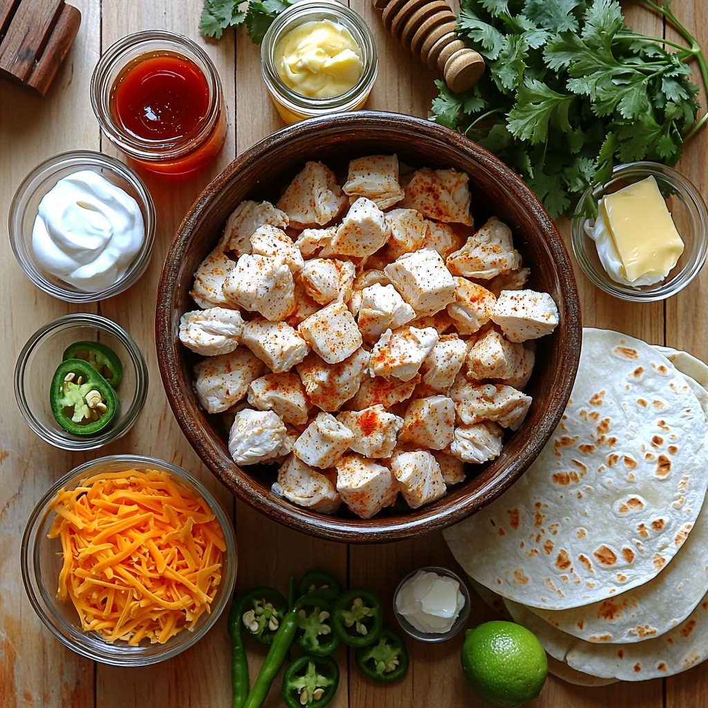 This Cheesy Hot Honey Chicken Quesadillas Recipe relies on simple ingredients that pack a flavorful punch. Each component plays an important role—from the smoky spices to the creamy, spicy jalapeño sauce, every bite bursts with taste and texture.