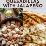 These Cheesy Hot Honey Chicken Quesadillas are a perfect blend of sweet, spicy, and savory flavors. Tender chicken breasts seasoned with smoky spices are tossed in a spicy honey sauce, then layered with gooey cheddar and Monterey Jack cheeses between warm flour tortillas. Grilled to golden perfection and served with a cool jalapeño cream sauce, these quesadillas make an irresistible quick meal or snack.
