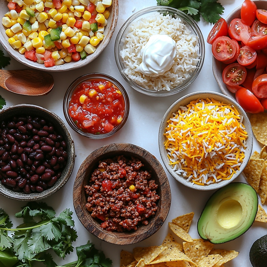 Gathering the right ingredients is half the fun with this recipe. Each item plays a vital role, from the savory meat and dynamic taco seasoning to the colorful beans and corn that add texture and sweetness. The cheese deliciously crowns the dish, melting into the rice for that satisfying finish.