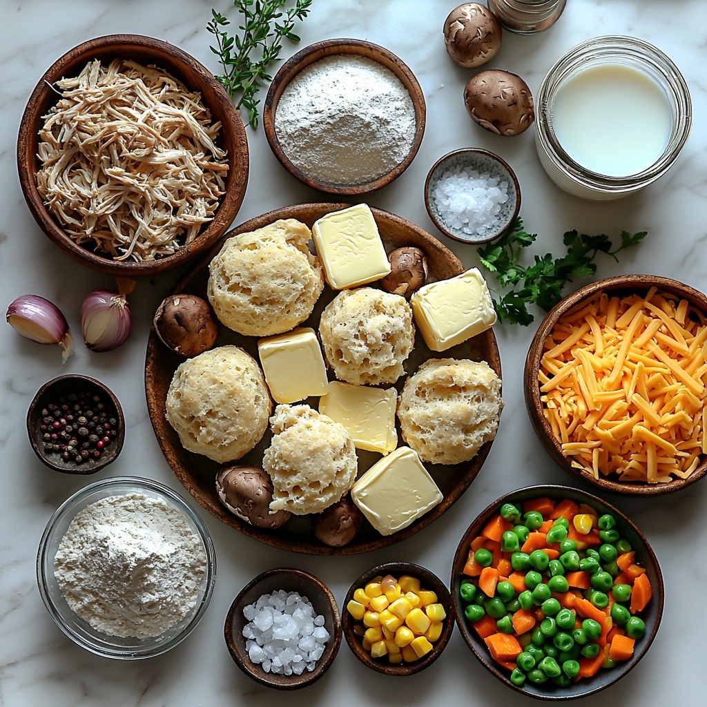 Gathering the right ingredients for this Chicken and Mushroom Biscuit Casserole Recipe is straightforward, but each component plays a vital role. From the savory mushrooms to the flaky biscuit topping, these ingredients create layers of taste and comfort in every bite.