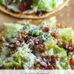 7. Serve: Toss shredded romaine lettuce with the prepared Caesar dressing. Top each chicken smash taco with dressed lettuce, crispy bacon, a sprinkle of shaved parmesan, and the toasted panko topping. Serve immediately with extra freshly grated parmesan on the side.