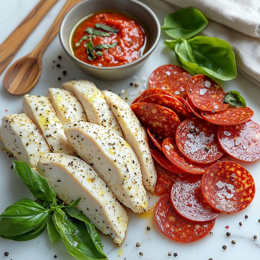 This recipe is all about simplicity meeting vibrant flavors. With just a handful of key ingredients, each brings its own magic—from the juicy chicken and hearty pepperoni to the aromatic Italian seasoning that ties everything together perfectly.