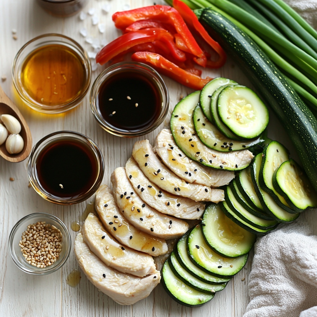 Gathering the right ingredients is the secret to nailing this Chicken Zucchini Stir Fry Recipe. Each component is simple but plays a crucial role — from the tender chicken that brings the protein to the fresh zucchinis adding crunch and color, to the flavorful sauce that ties it all together perfectly.
