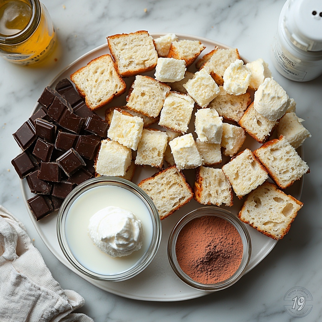 These ingredients come together effortlessly but are essential to creating the perfect texture and irresistible flavor in your chocolate bread pudding. Each one adds its own magic to the dish, from the soft, golden challah bread to the deep intensity of cocoa powder.