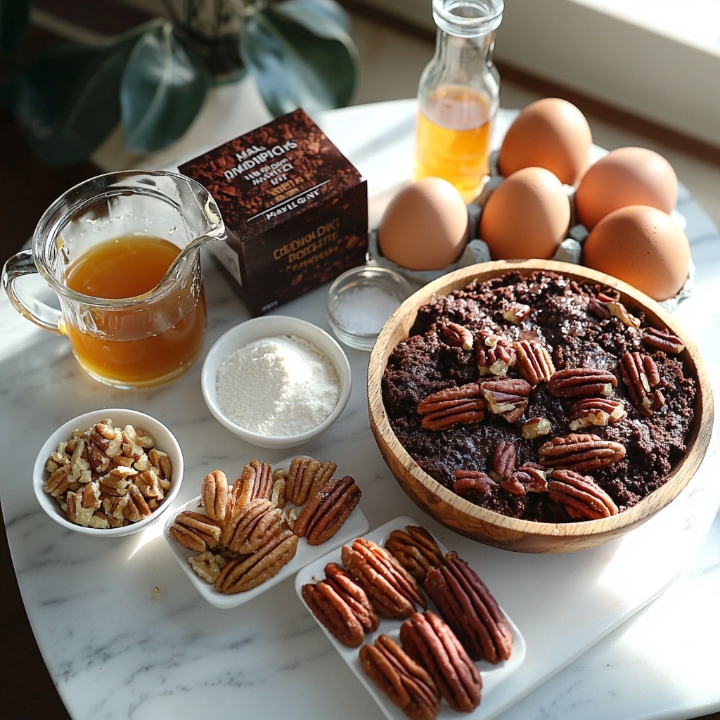 The magic of this Chocolate Pecan Cobbler Recipe lies in a handful of simple ingredients that each play a crucial role in building layers of flavor and texture. From the crunchy pecans to the silky maple syrup, each component enhances the cake’s rich, comforting personality.