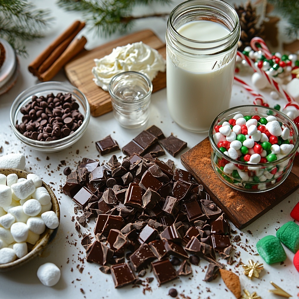 Gathering simple yet quality ingredients is the secret to nailing this Christmas Chocolate Hot Cups Recipe. Each one adds a distinct layer of richness, creaminess, or a festive touch that makes this drink truly irresistible.