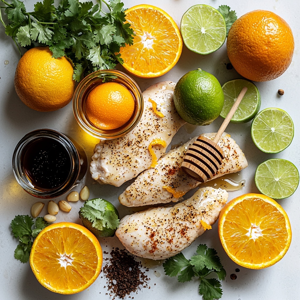 1. Prepare the marinade: Zest and juice the oranges and limes. In a medium bowl, whisk together the citrus zest and juice with olive oil, honey, ground cumin, soy sauce, minced garlic, chopped cilantro, salt, and pepper until well combined to form a vibrant marinade.