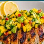 To elevate your dish, top the grilled chicken with a bright and creamy mango-avocado salsa. The sweetness of mango combined with the luscious creaminess of avocado complements the zesty chicken perfectly, adding a refreshing contrast and a burst of color that makes the plate pop.