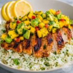 To elevate your dish, top the grilled chicken with a bright and creamy mango-avocado salsa. The sweetness of mango combined with the luscious creaminess of avocado complements the zesty chicken perfectly, adding a refreshing contrast and a burst of color that makes the plate pop.