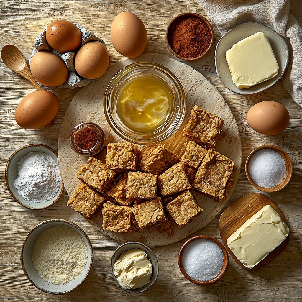 Gathering your ingredients for this recipe is as joyful as biting into these blondies themselves. Each component plays an essential role, from the creamy butter that ensures a tender crumb, to the cinnamon that imbues every bite with its signature warmth and spice. Here’s what you will need to bring this incredible Cinnamon Roll Blondies Recipe to life:
