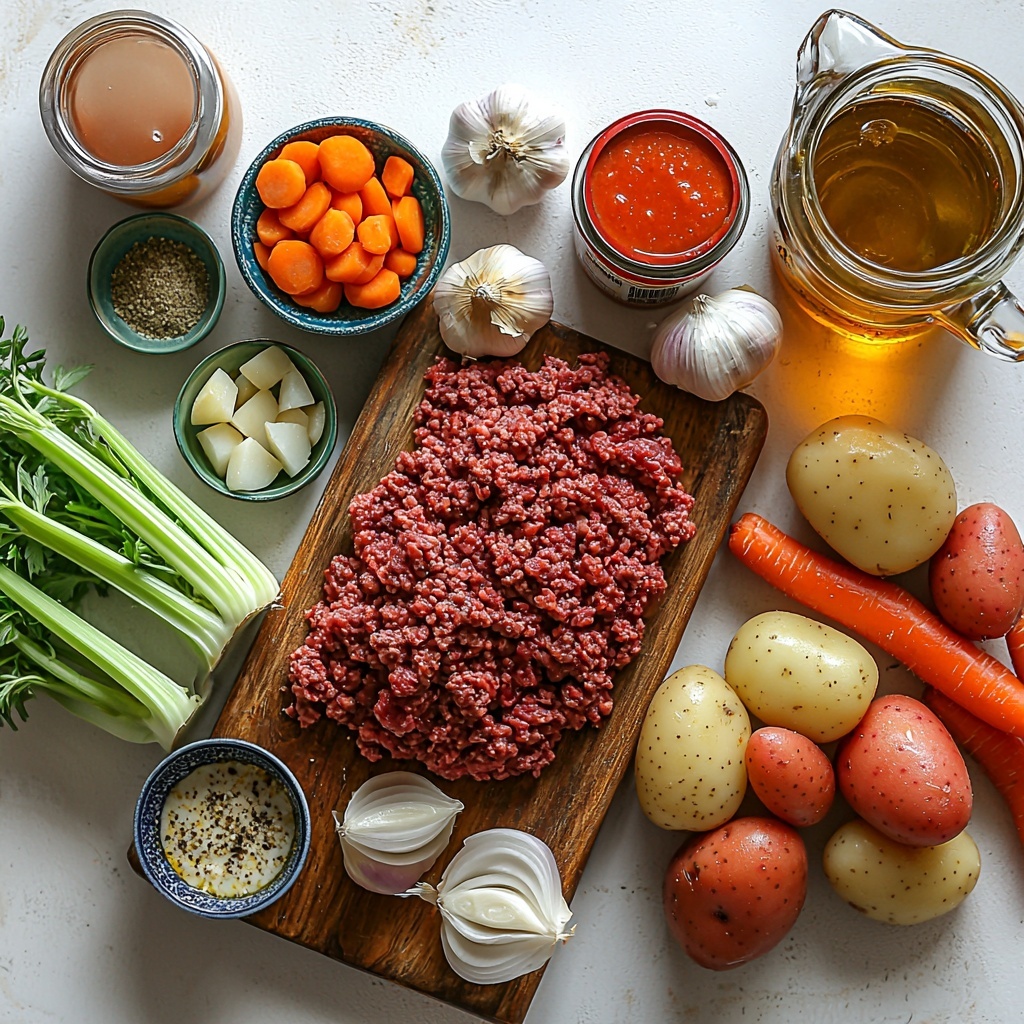- 1 lb ground beef: The star protein, bringing rich, savory depth to the soup.