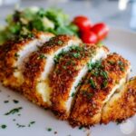 For a special occasion, serve the chicken atop a bed of sautéed spinach or zucchini noodles for a low-carb twist. You can also slice the crusted chicken and layer it on warm ciabatta bread toasted with garlic butter for a decadent sandwich experience. The crispy, cheesy crust makes every presentation look and taste like a feast!