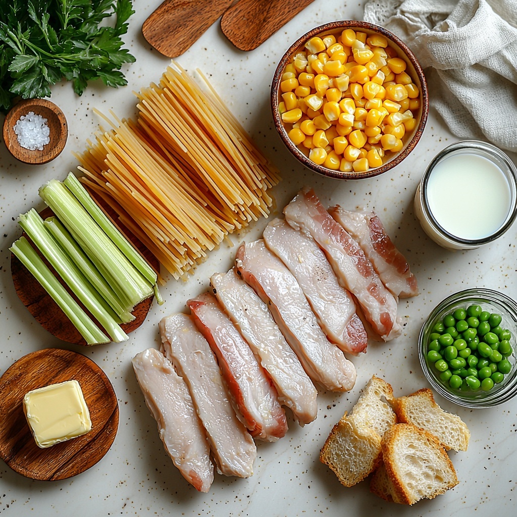 Getting this rich and flavorful soup on the table is surprisingly straightforward thanks to a handful of simple, thoughtfully chosen ingredients. Each component plays a crucial role, from the savory chicken and smoky bacon to the fresh aromatics and tender pasta. Together, they create a symphony of textures and tastes that make this soup such a beloved comfort food.