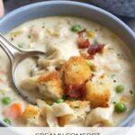 Creamy Chicken Noodle Soup with Mini Croutons Recipe