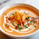 Enhance your serving experience by adding crunchy tortilla chips for a salty crunch and a handful of fresh cilantro for an herbal lift. If you want to kick things up, add diced avocado, a dollop of sour cream, or some shredded cheese. These toppings offer varying textures and creaminess that elevate the soup beautifully.