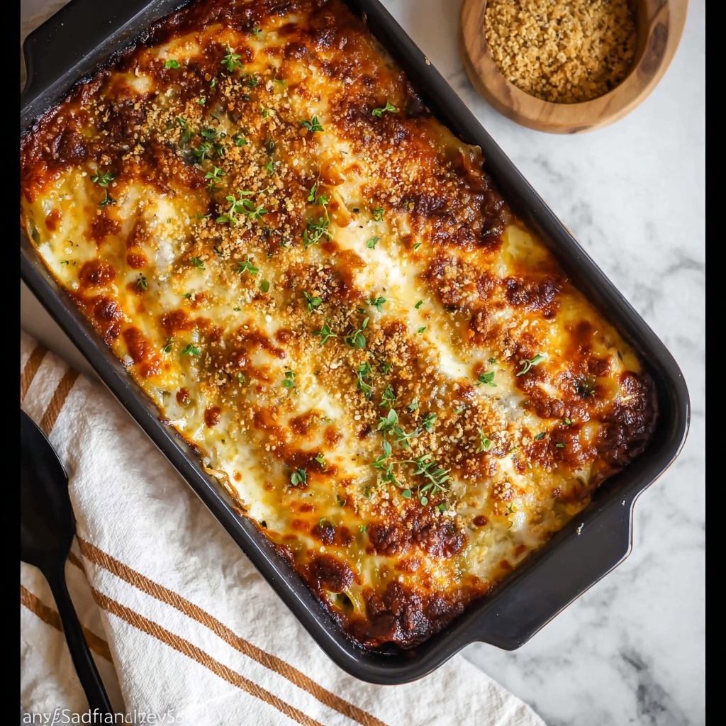 Allow the Creamy Four-Cheese Cauliflower Bake Recipe to rest for 5 minutes once it comes out of the oven. This helps the cheese sauce thicken just a touch and ensures each serving holds together beautifully. When you’re ready, sprinkle the thyme-infused crispy breadcrumbs over the top for a burst of herbal aroma and textural delight before serving.