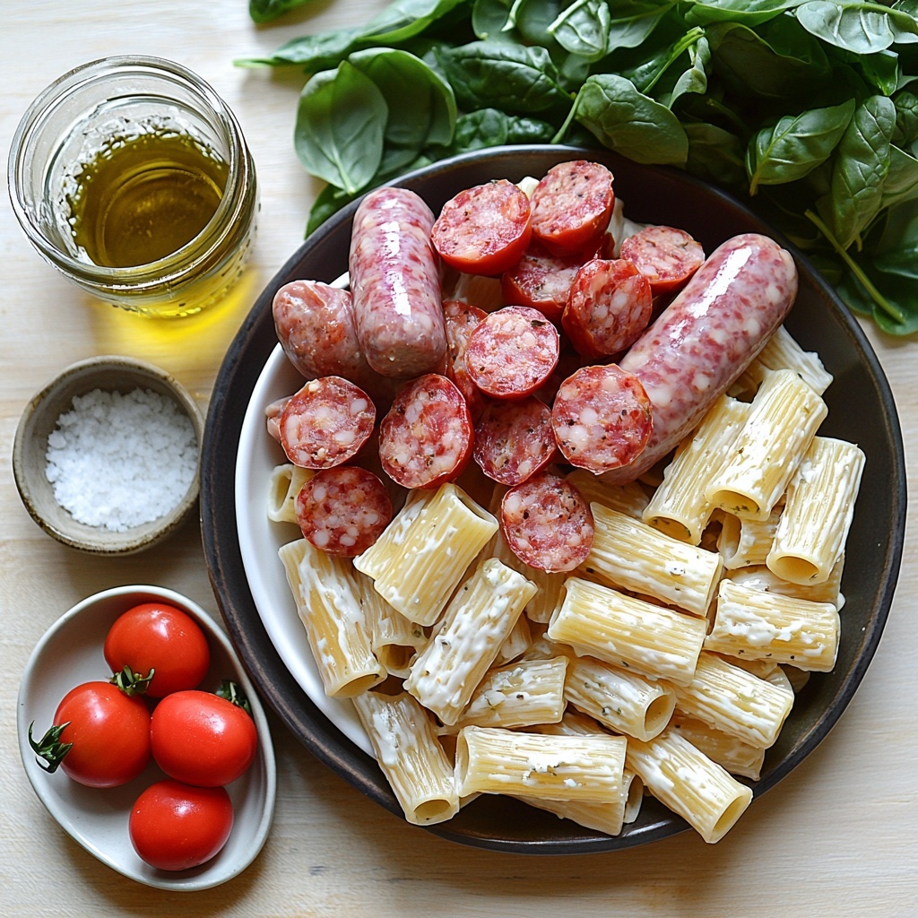 How to Make Creamy Sausage Rigatoni with Spinach and Tomato Garlic Sauce Recipe