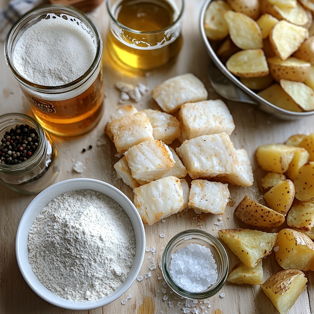 Every ingredient in this Crispy Beer Battered Fish and Chips (Pub-Style Recipe) Recipe plays a vital role in delivering that classic texture and flavor. From the starches that make the batter light and crisp to the choice of russet potatoes that yield perfectly fluffy chips, simplicity meets essential culinary magic here.