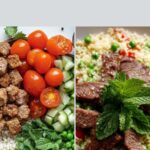 - Assemble and serve: Top the dressed tabbouleh with the crispy lamb pieces and serve immediately, optionally accompanied by lemon wedges for extra zest.