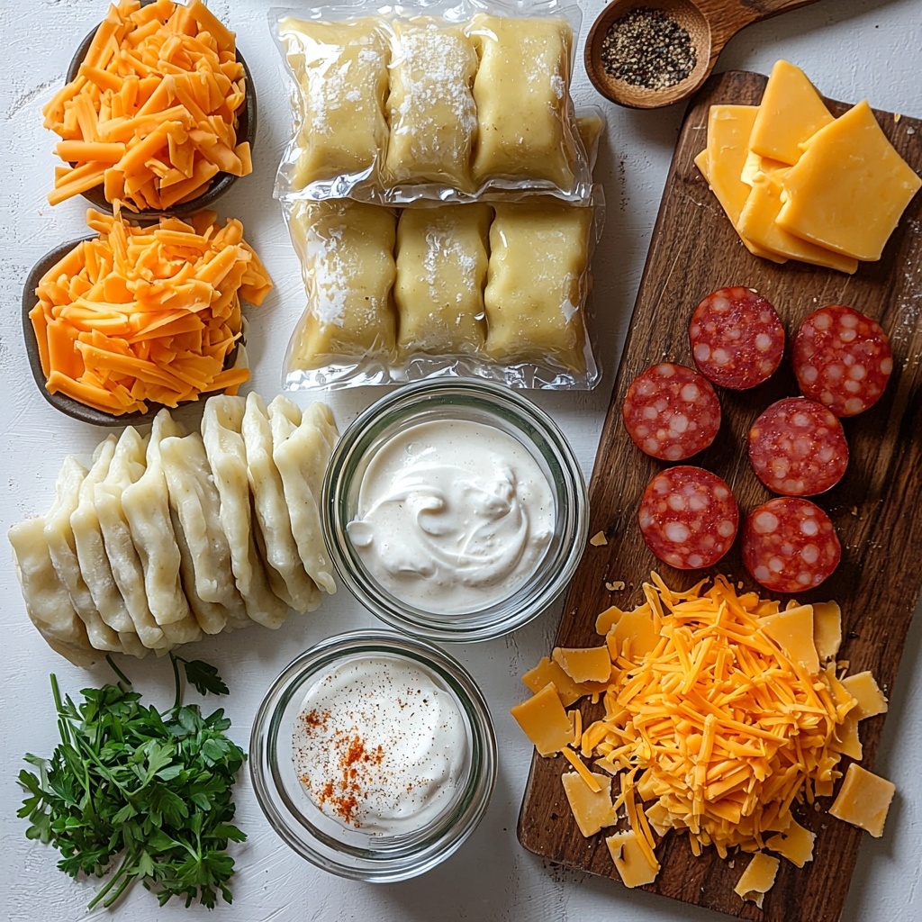 Gathering simple yet essential ingredients is the key to making this casserole both approachable and delightfully flavorful. Each component plays a unique role, whether it’s adding creaminess, smokiness, tang, or just the right amount of cheesy goodness.