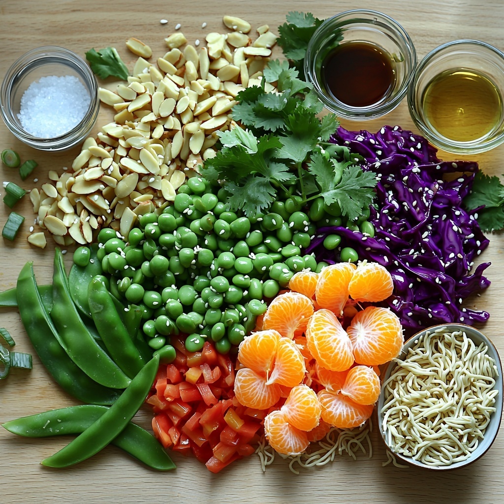 Start by heating 1 tablespoon of vegetable oil in a large skillet over medium heat. Add the crushed ramen noodles and sliced almonds, stirring frequently for about 4 to 5 minutes until golden and fragrant. This toasting step unlocks their nuttiness and creates the signature crunch that is so central to the Crunchy Asian Ramen Noodle Salad Recipe.