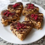 These Crunchy Granola Heart Bars are a delicious and wholesome snack perfect for any time of the day. Made with rolled oats, almonds, honey, and coconut oil, they offer a perfect balance of natural sweetness and crunch. Finished with a drizzle of dark chocolate and a sprinkle of dried cranberries, these bars make a delightful treat that’s both nutritious and visually appealing—ideal for gifting or enjoying on the go.