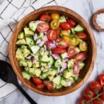 This Cucumber Tomato Avocado Salad Recipe is best enjoyed fresh, as freezing will change the texture of the vegetables and avocado, making them mushy upon thawing. For best results, avoid freezing and store only fresh.