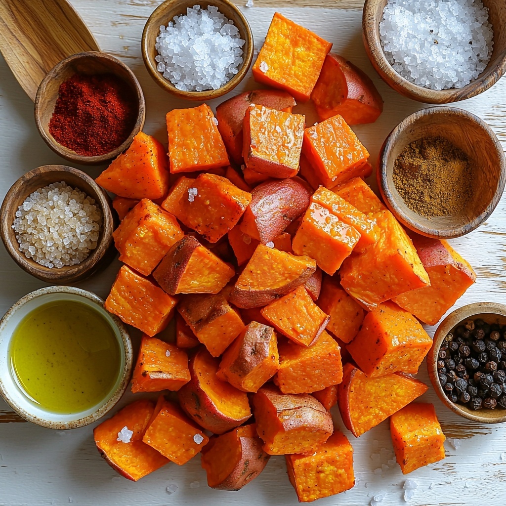 The best part about this recipe is how straightforward and essential the ingredients are. Each one plays a key role: from sweet potatoes that bring vibrant color and natural sweetness, to oils and spices that create that irresistible caramelized exterior and depth of flavor.
