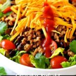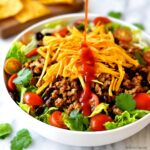 When you’re ready to eat, crumble your nacho cheese Doritos over the salad and drizzle with Catalina or your favorite dressing. Toss everything lightly to coat and enjoy the satisfying contrast of creamy and crunchy that makes this Doritos Taco Salad Recipe truly special.