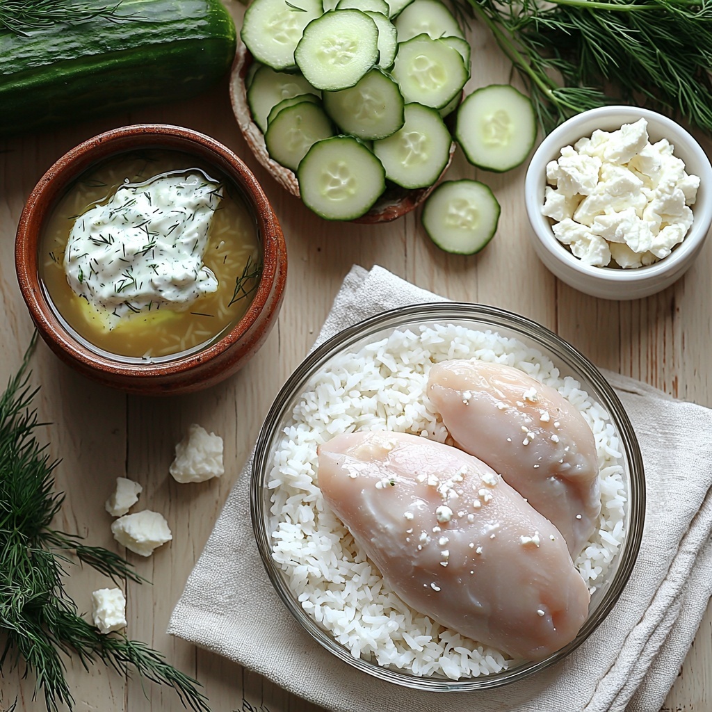 These ingredients are simple but essential, each playing a special role in building the texture, taste, and visual appeal of the Dump-and-Bake Chicken Tzatziki with Rice Recipe. From the hearty rice soaking up rich chicken broth to the cool creaminess of tzatziki, every element works in harmony.
