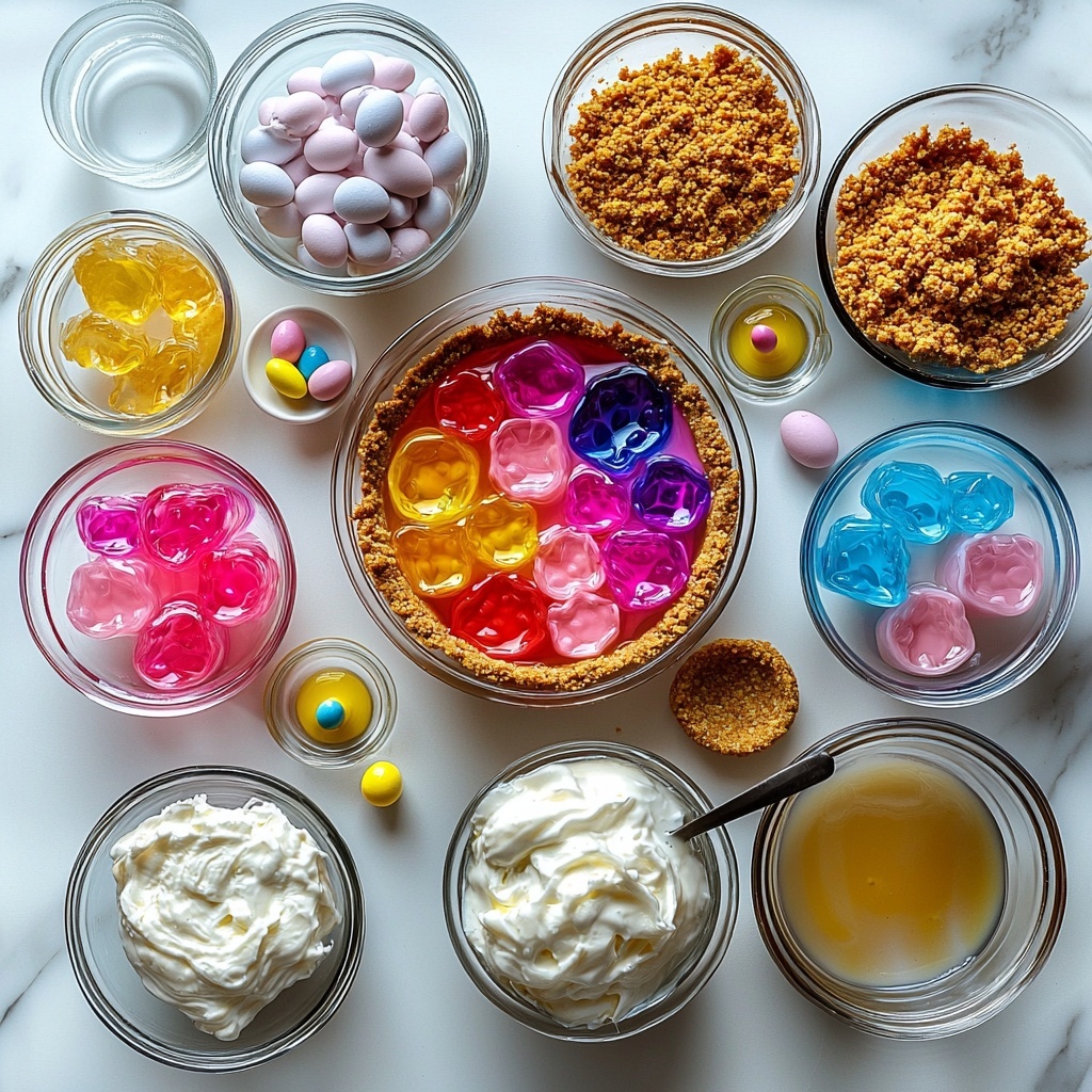 Gathering simple, everyday ingredients is all it takes to whip up this show-stopping Easter Colorful Jell-O Pie Recipe. Each item plays a key role in creating layers of flavor, texture, and vibrant color that come together effortlessly for an impressive dessert.