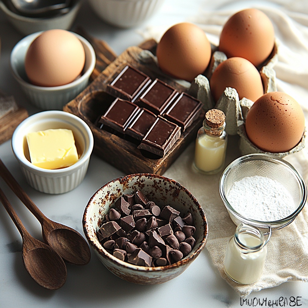 This recipe calls for just a handful of essential ingredients that come together to create that iconic soufflé texture and flavor. Each component plays a crucial role, from the smooth richness of melted chocolate and butter to the light and airy whipped egg whites. Paying attention to quality and technique here is what makes this dessert shine.