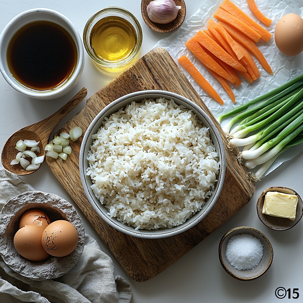 - 2 cups cold, day-old white rice: Using day-old rice ensures your fried rice has the perfect texture—fluffy and separate, not mushy.